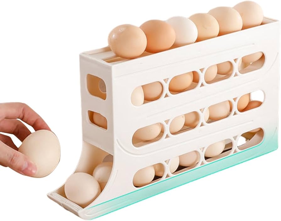 🖲 এক, দুই, তিন নয় 🤓 আমরা এনেছি ৪ তাক বিশিষ্ট Auto Roll Down Egg Shelf ।